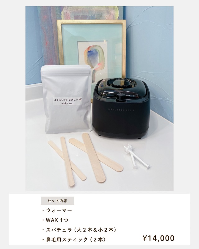 「JIBUN SALON」からHOTWAXのホームケアキットが新発売。自宅にいながら、気軽にWAXでお肌のお手入れができます。 このキットには、美容成分豊富で肌に優しいWAXと必要なツールも揃っているので、初心者でも安心して使用できます。 【こんな方におすすめ】 毛穴の開きを気にしている 肌のごわつき、ざらつきが気になる メイクのりが悪い 【セット内容】 • ウォーマー • WAX 1個 • スパチュラ 大2本 小2本 • 鼻毛用スティック 2本 自宅で気軽に行える新習慣を始めませんか? 驚くほどツルツルの肌是非ご体感ください!